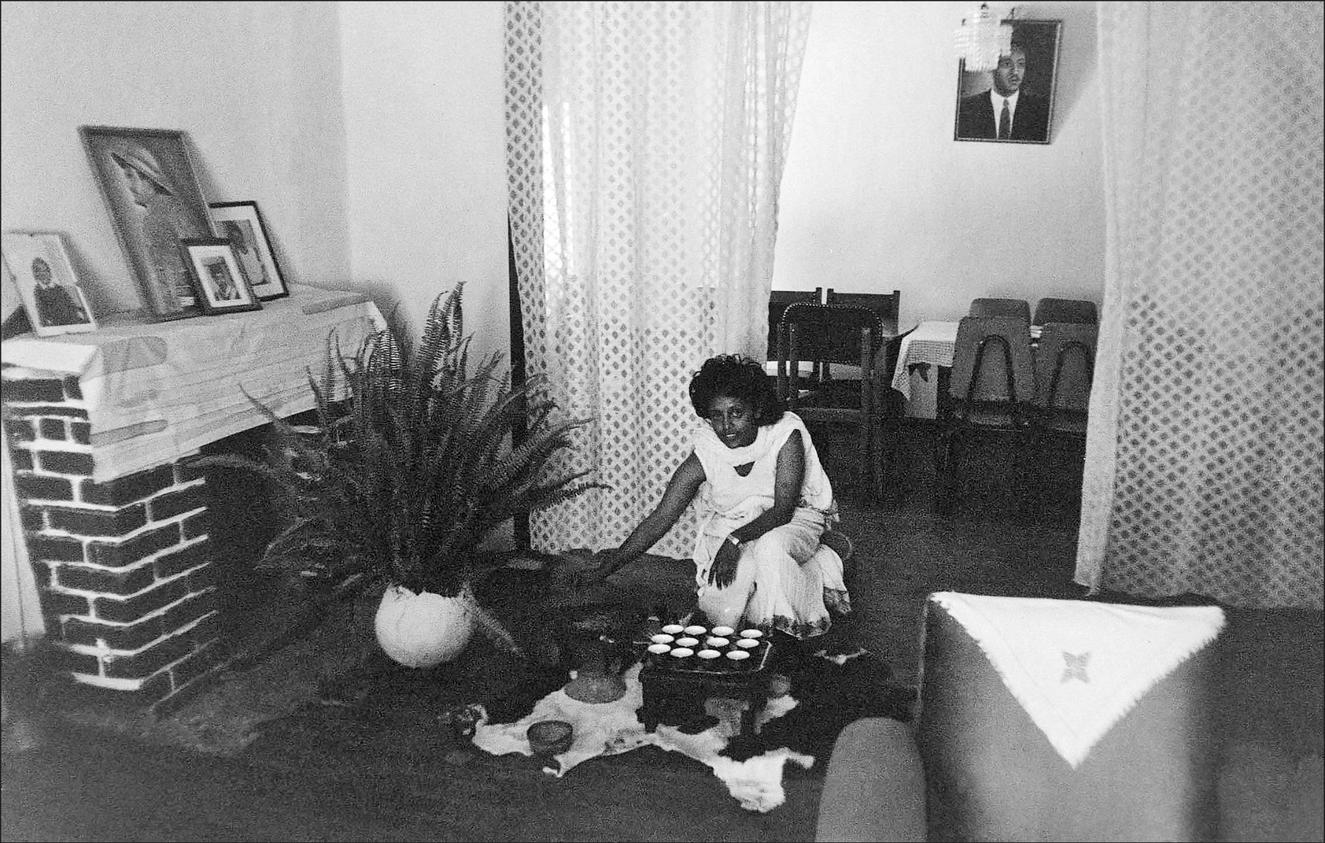 Etiopský kávový obřad, je vždy veden mladou ženou nebo někdy i matriarchou domu. Protože jsou děti pravidelně přítomny u tohoto obřadu, dívky jsou vždy vybízeny k tomu, aby se naučily potřebné dovednosti a lze tedy očekávat, že hostitelka bude velmi zběhlá. Během obřadu nosí tradiční bílé bavlněné šaty pod kotníky, vyšívané na jeho okrajích barevnou nití. Její pohyby jsou vlastně svéráznou uměleckou formou. Tsehay se skutečně pohybovala jako víla, bylo na ní znát, že obřad ovládá bravurně a my jsme na ni koukali jako na zjevení.