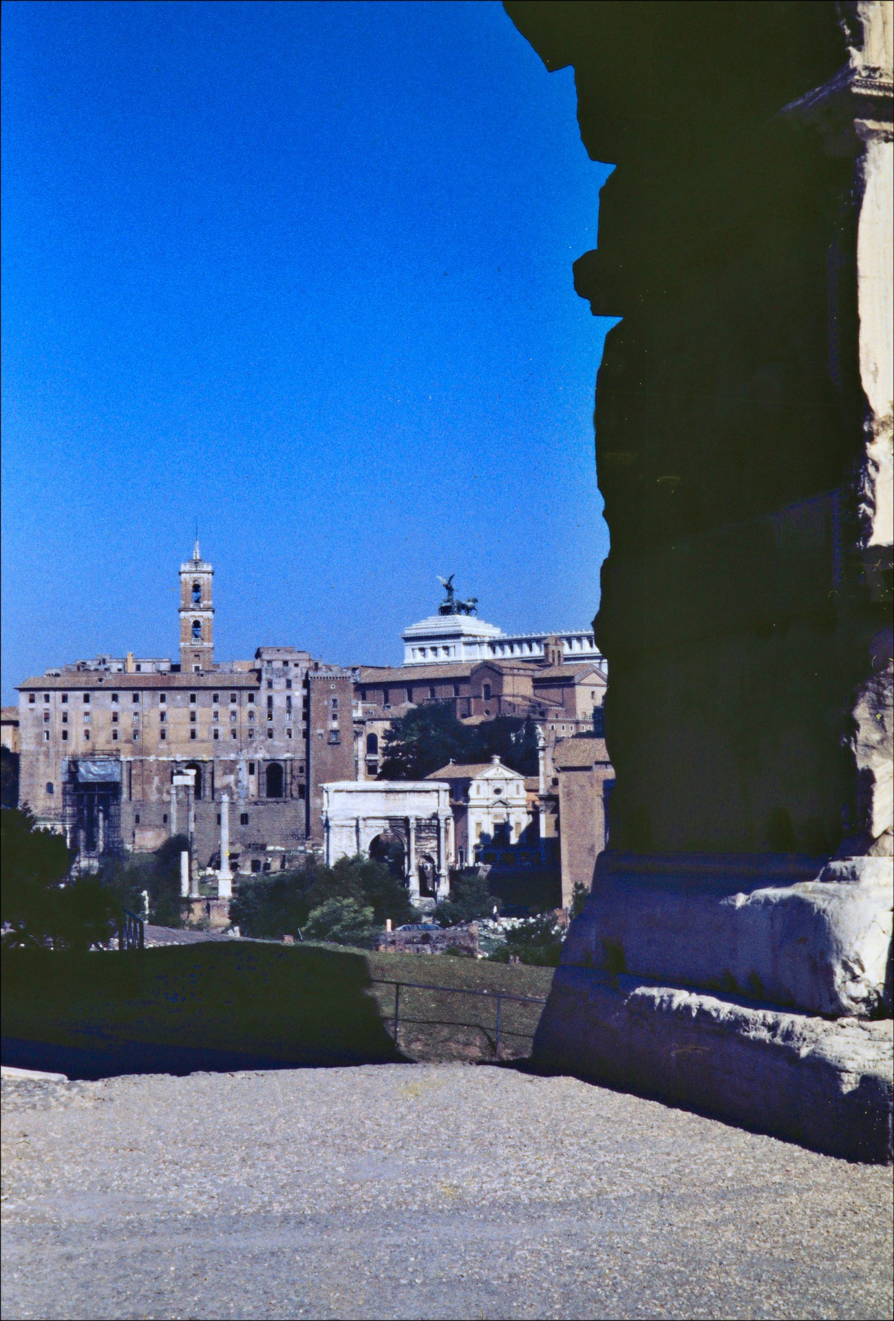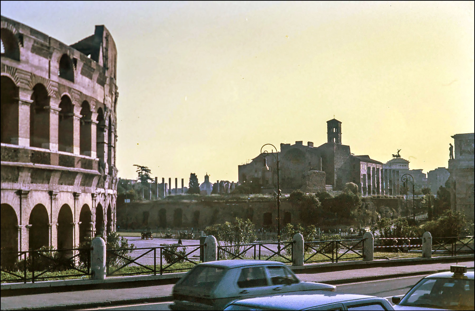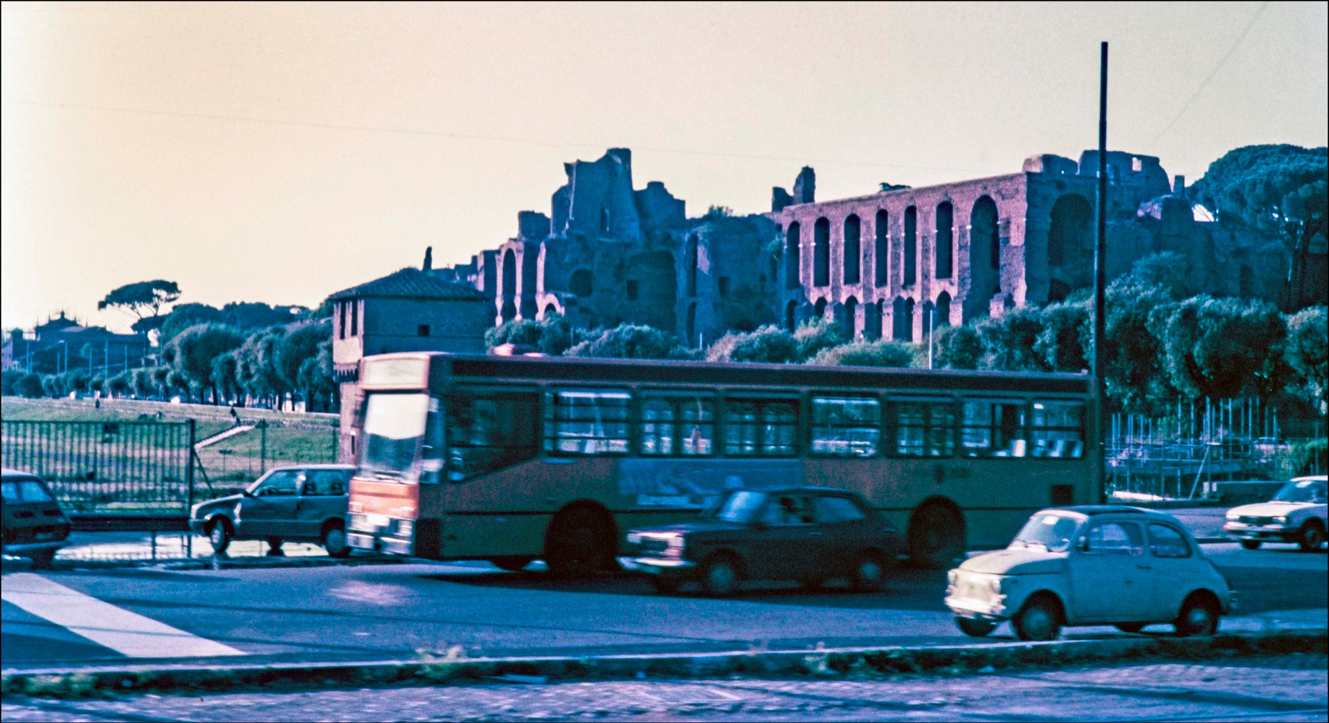 Z Fiumicina do centra Říma je to asi čtyřicet kilometrů. V autobusu jsem byl nabit očekáváním, představoval jsem si kolik legií zde pochodovalo oběma směry, vždyť nedaleko od Fiumicina ležel přístav starého Říma Ostie. Trasa, kterou jsme jeli byla pro mě ohromující. Najednou se před námi vynořily stavby, starověké ruiny na kopci Palatin. Byly to pozůstatky císařských paláců. Ač jsem byl dost vybaven znalostmi týkajících se tohoto místa, přece jenom jsem byl překvapen jejich velikostí a rozlehlostí. mi ještě jeden zbyl