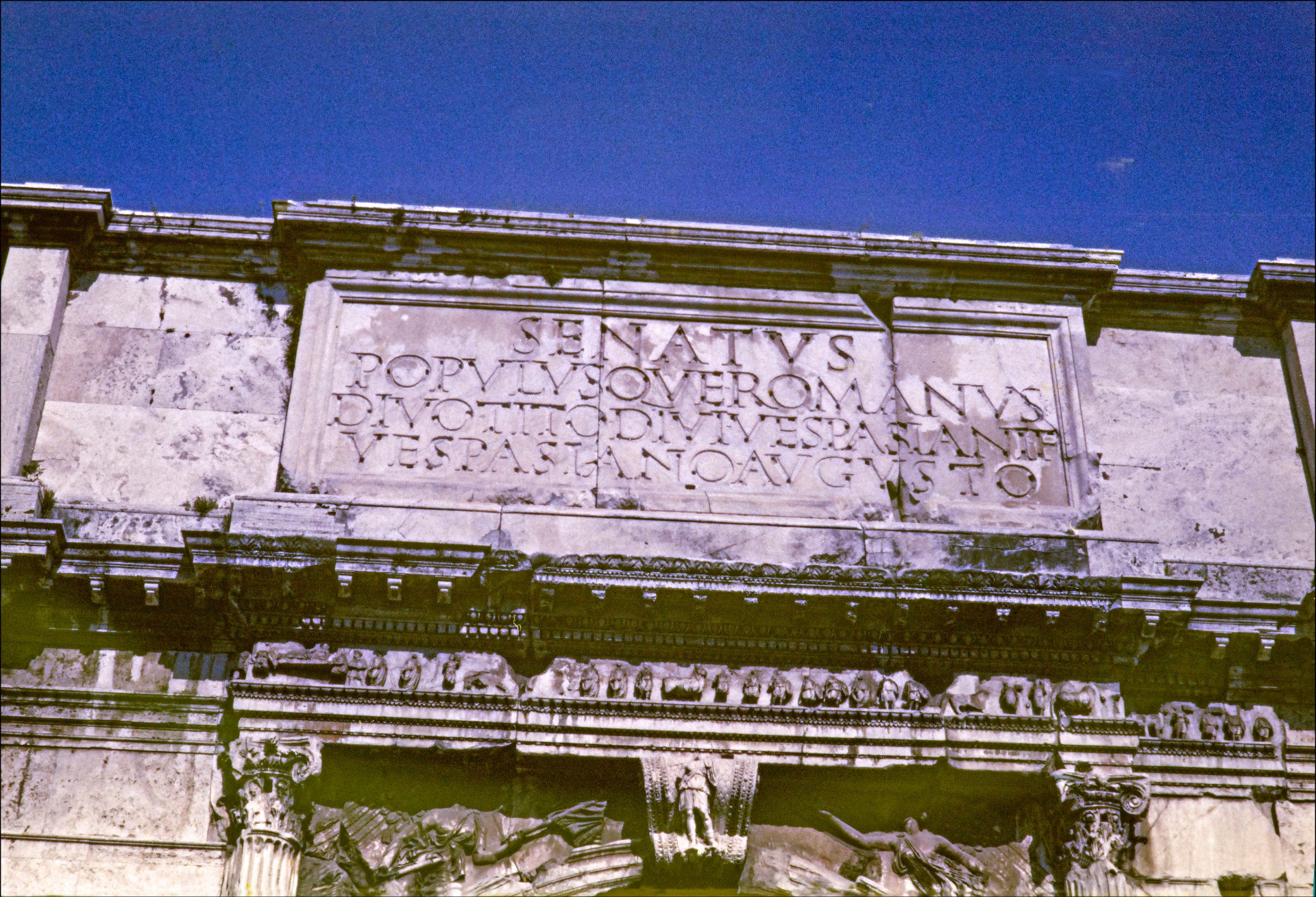 Senát a lid římský (věnují) božskému Titovi, synovi božského Vespasiana,Vespasianu Augustovi