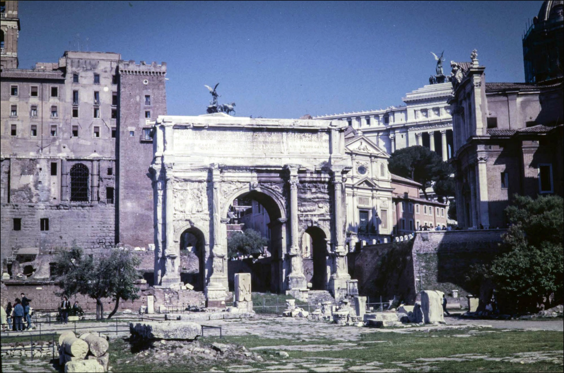 Od tohoto oblouku se rozevírá phled na trosky někdejšího "středu světa", Rorum Romanum.