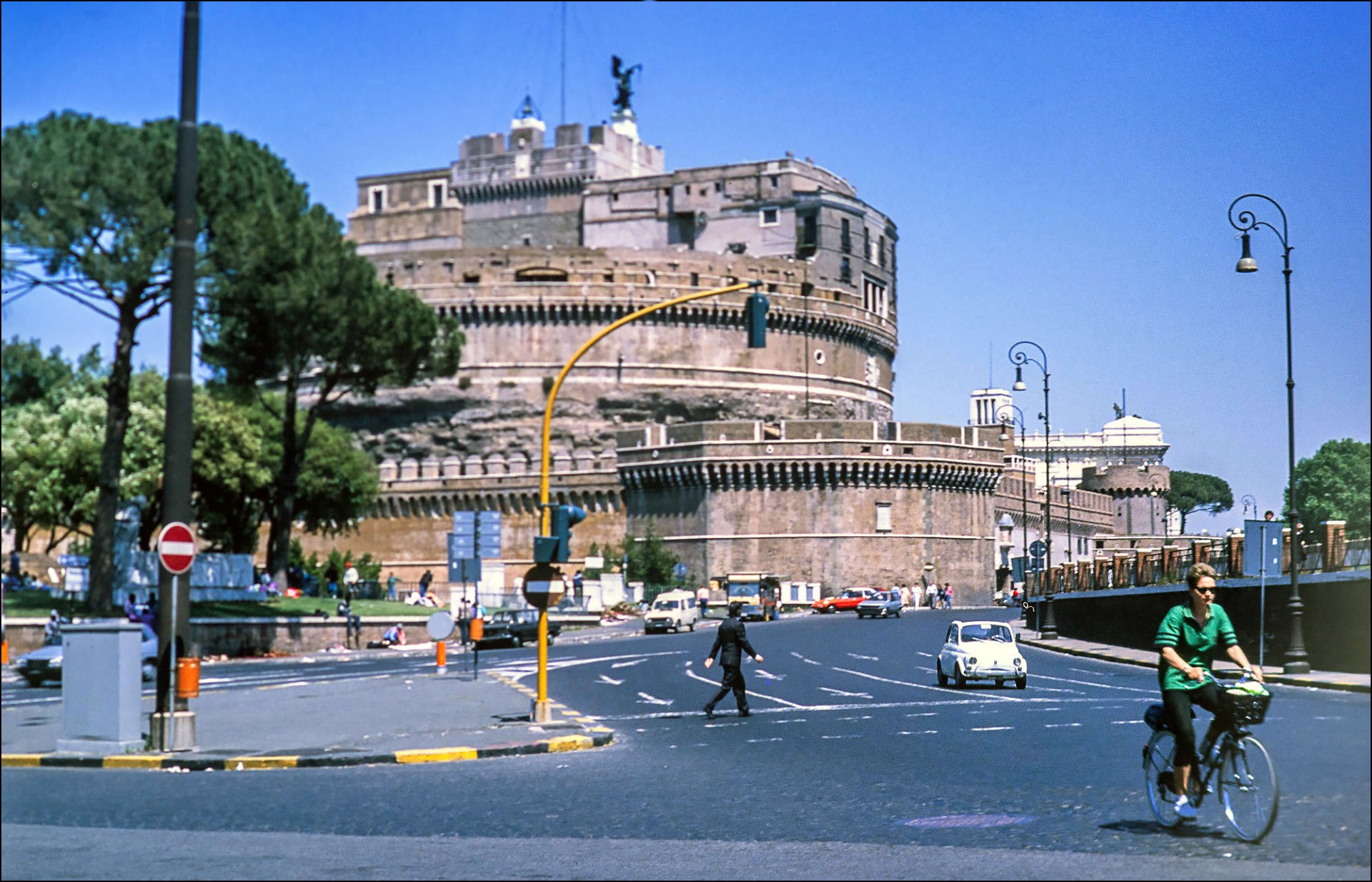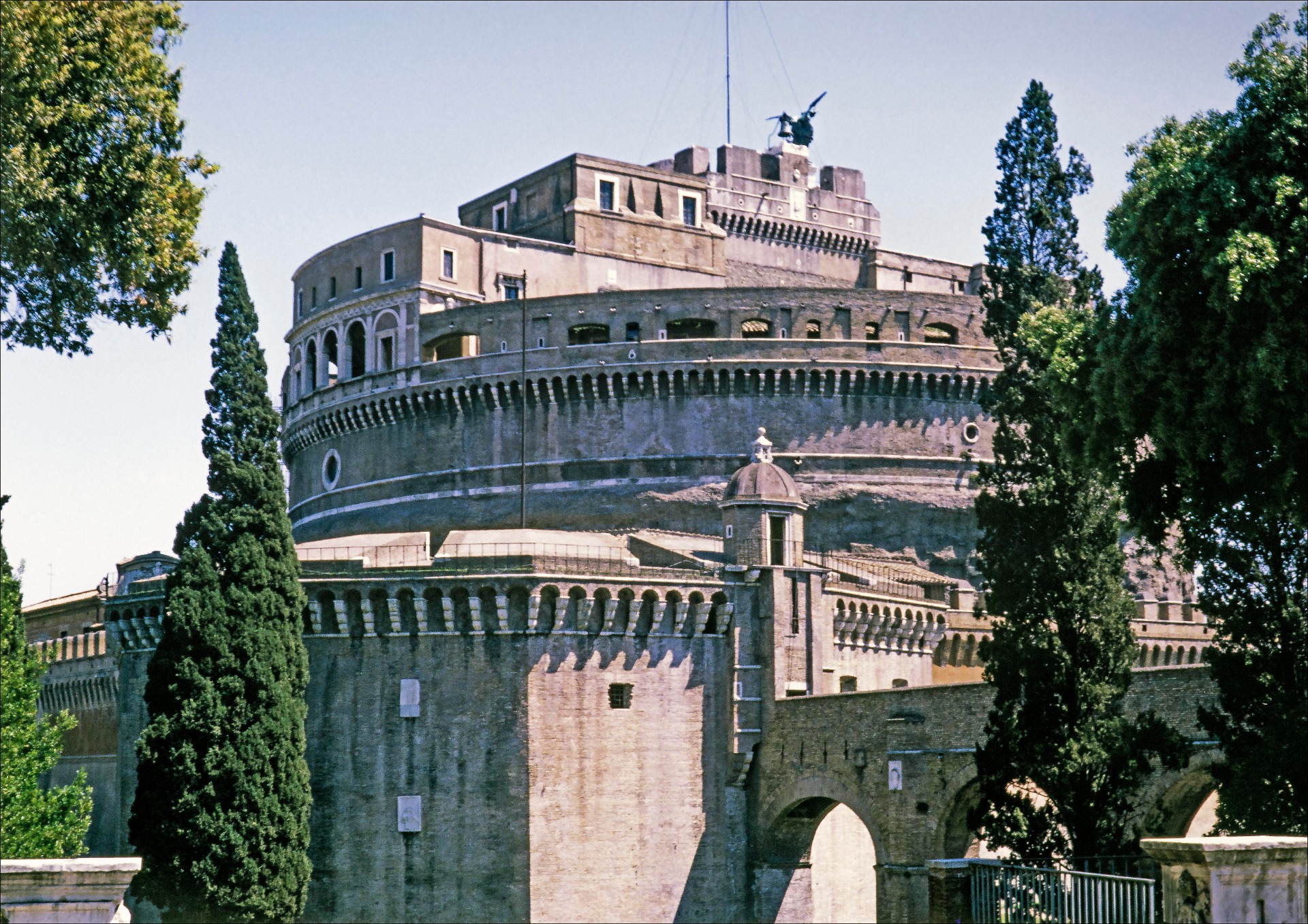 Andělský hrad (Castel Sant ́Angelo) se nachází nedaleko Vatikánu, se kterým byl spojen chodbou. Tudy se uchyloval do úkrytu papež v době obléhání. Dnes je pevnost také obléhána, ale turisty. Zdroj : internet